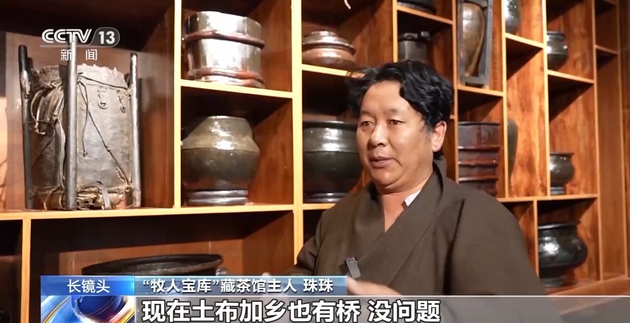 “牧人宝库”藏茶馆主人 珠珠:现在在党的恩情下,所有事情都变得便捷。以前没水的地方有了水、没电的地方通了电、没路的地方有了路,我有信心会变得越来越好。