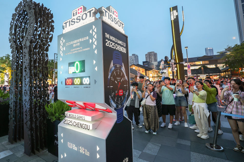8月7日,人们在成都太古里拍摄第12届世界运动会倒计时牌。当日,第12届世界运动会开幕式在成都举行。新华社记者 张丽芸 摄