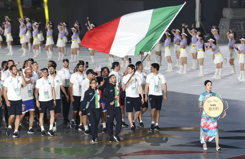 8月7日,意大利体育代表团在开幕式上入场。新华社记者 姜克红 摄
